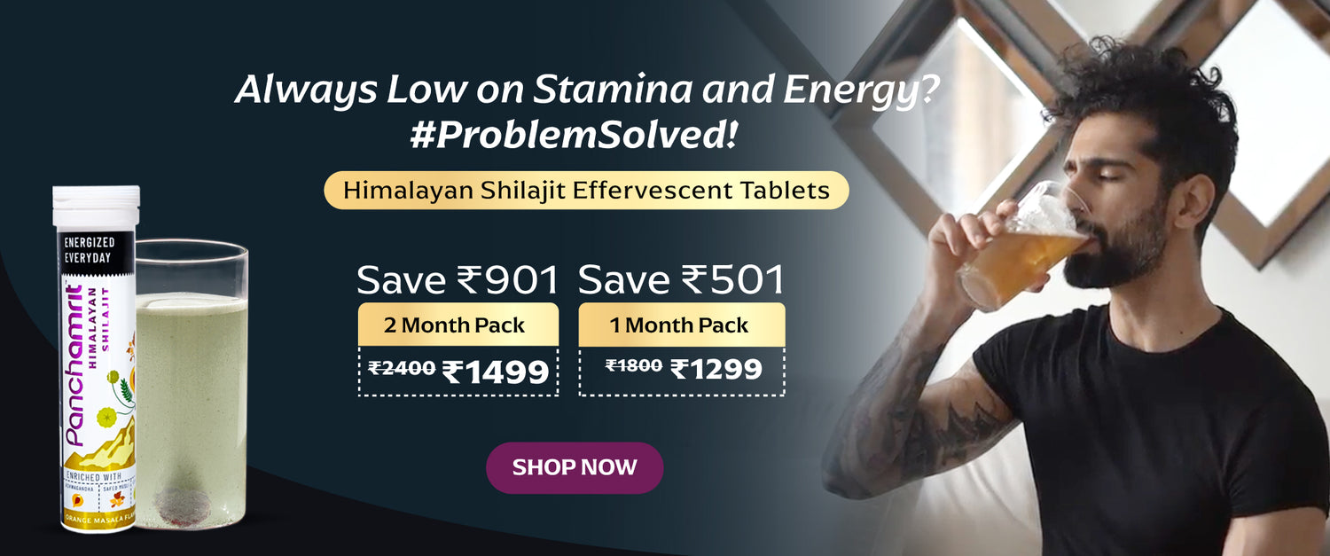40% OffVendor:Low Stamina ➡ Problem Solved4.7/5Panchamrit Himalayan Shilajit Effervescent Tablets | Orange Masala Flavour