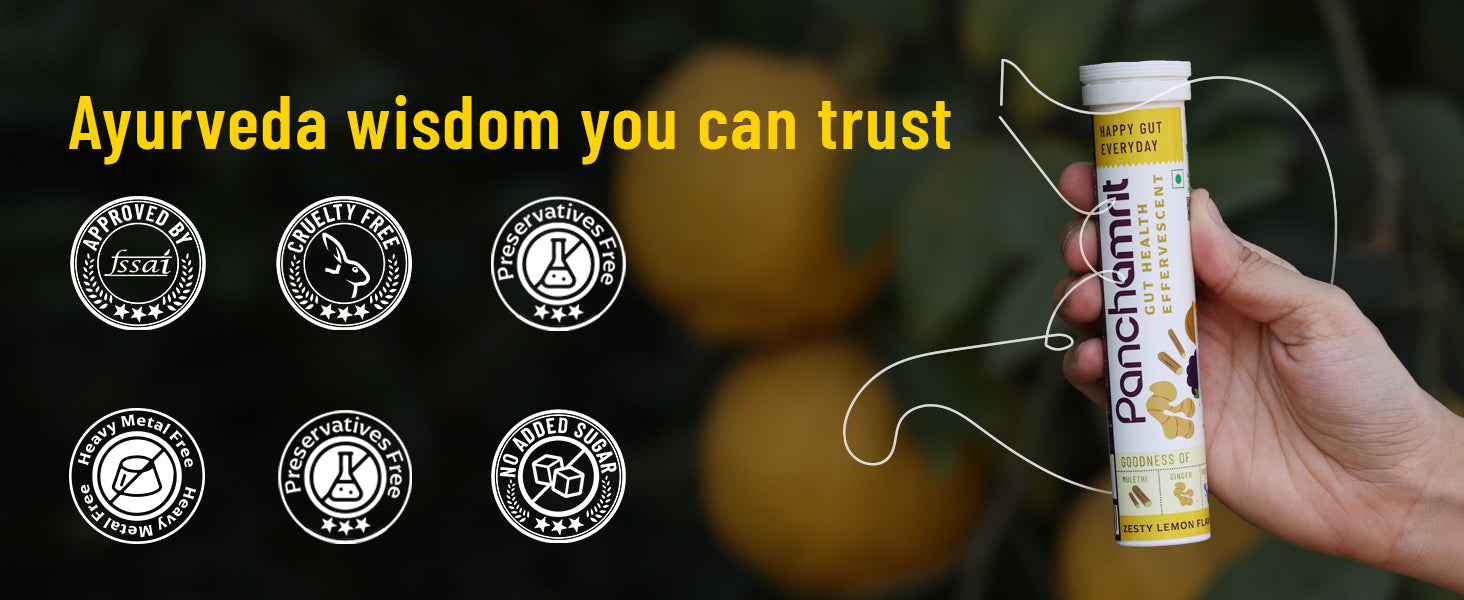 One tablet of Panchamrit Gut Health Effervescent, every day is sufficient to naturally improve your holistic health and help you #BeBetterEveryday