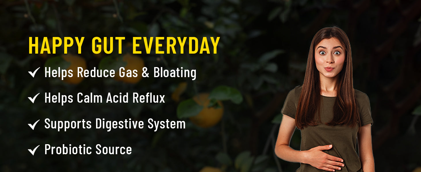 Relief from gas, bloating & digestive uneasiness, reduced acid reflux, strengthened digestion.