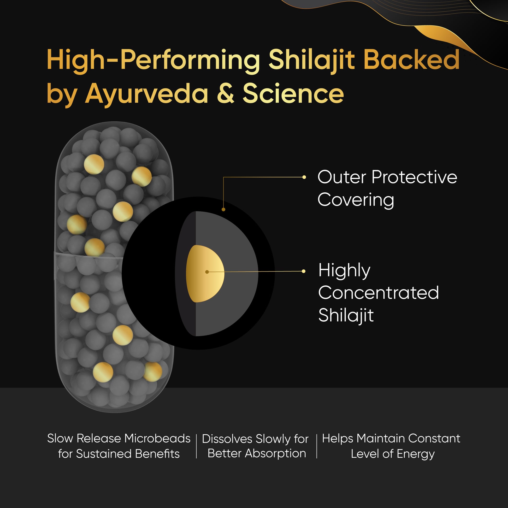 Unlike traditional Shilajit formats, Sustained Release Capsules provide a gradual release of Shilajit for all-day energy and better absorption for long-lasting effects!