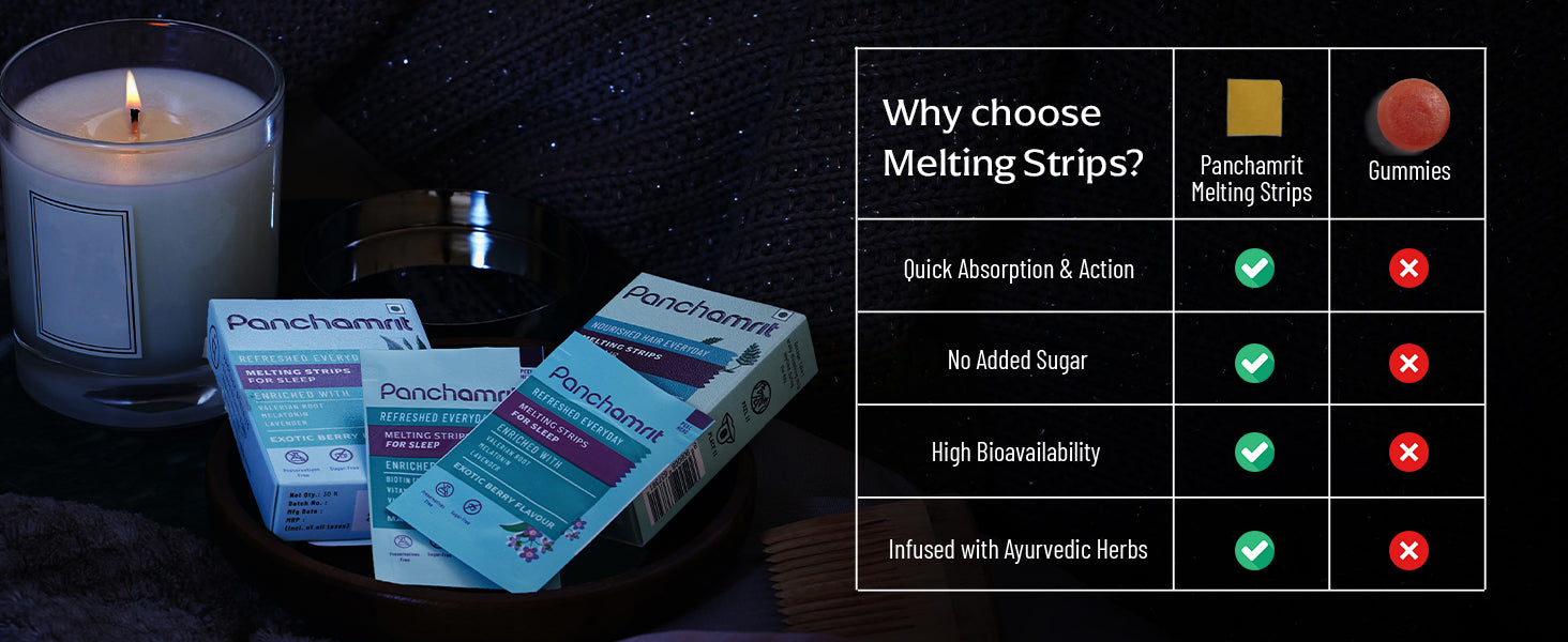 Our Melting Melatonin Strips are not habit forming, which is otherwise the case with traditional Melatonin supplements. They also have the added benefits of Valerian Root, Lavender and Chamomile — all known to be natural sources of promoting sleep.