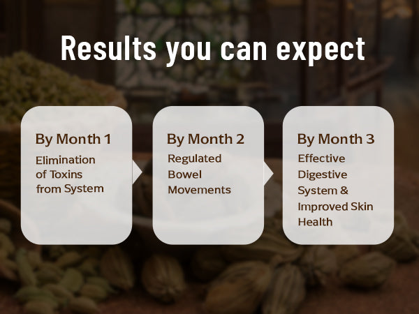 Relief from constipation, regulated bowel movement, better digestion, enhanced blood circulation & cellular health, help with fat loss, improved dental & skin health, heightened energy levels and elimination of toxins from the body.